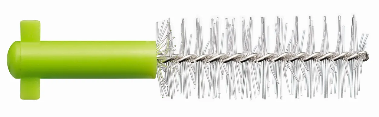 - 除了足夠細密的牙間刷毛外,牙間刷的直徑更是關鍵,恰如其分的刷毛可完全貼合牙齒間的縫隙,在牙間刷深入牙縫的同時,展開傘狀清潔面,達到雨傘效應。
